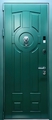 Зеленая металлическая дверь МДФ со стукалкой